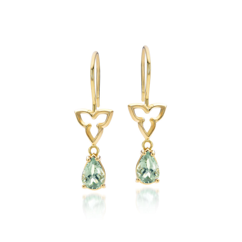 Deze 14 karaats geelgouden oorhangers hebben een groene toermalijn. De gouden oorbellen zijn hoogglans afgewerkt, kennen een gotische vorm boven de groene edelsteen. Prachtig te combineren met de geelgouden ring met groene toermalijn, geelgouden oorstekers en de geelgouden hanger met gotische vorm.