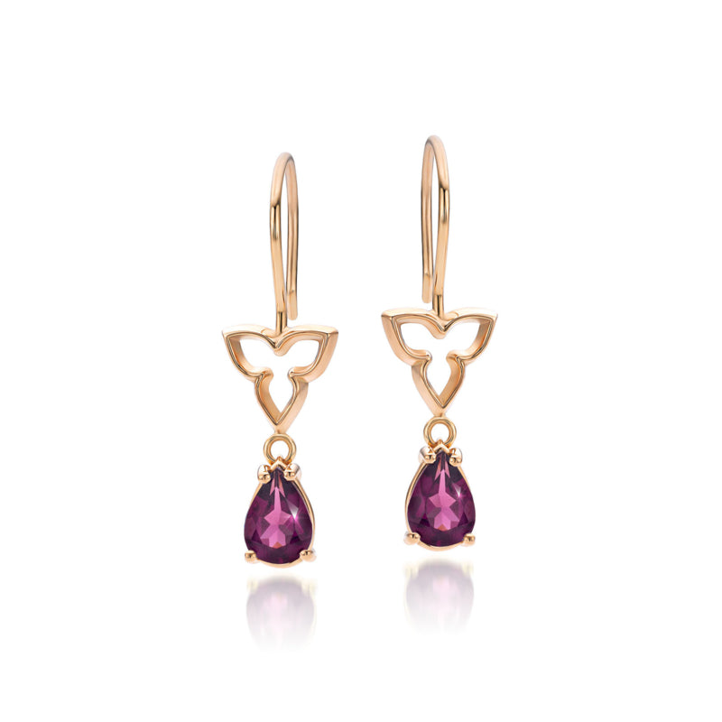 Deze 14 karaats roségouden oorhangers hebben een wijnrode Rhodoliet granaat. De gouden oorbellen zijn hoogglans afgewerkt, kennen een gotisch element boven de lichtroze edelsteen. Prachtig te combineren met de Roodgouden ring met Rhodoliet Granaat, roodgouden oorstekers, armband en de roodgouden hanger met gotische vorm.