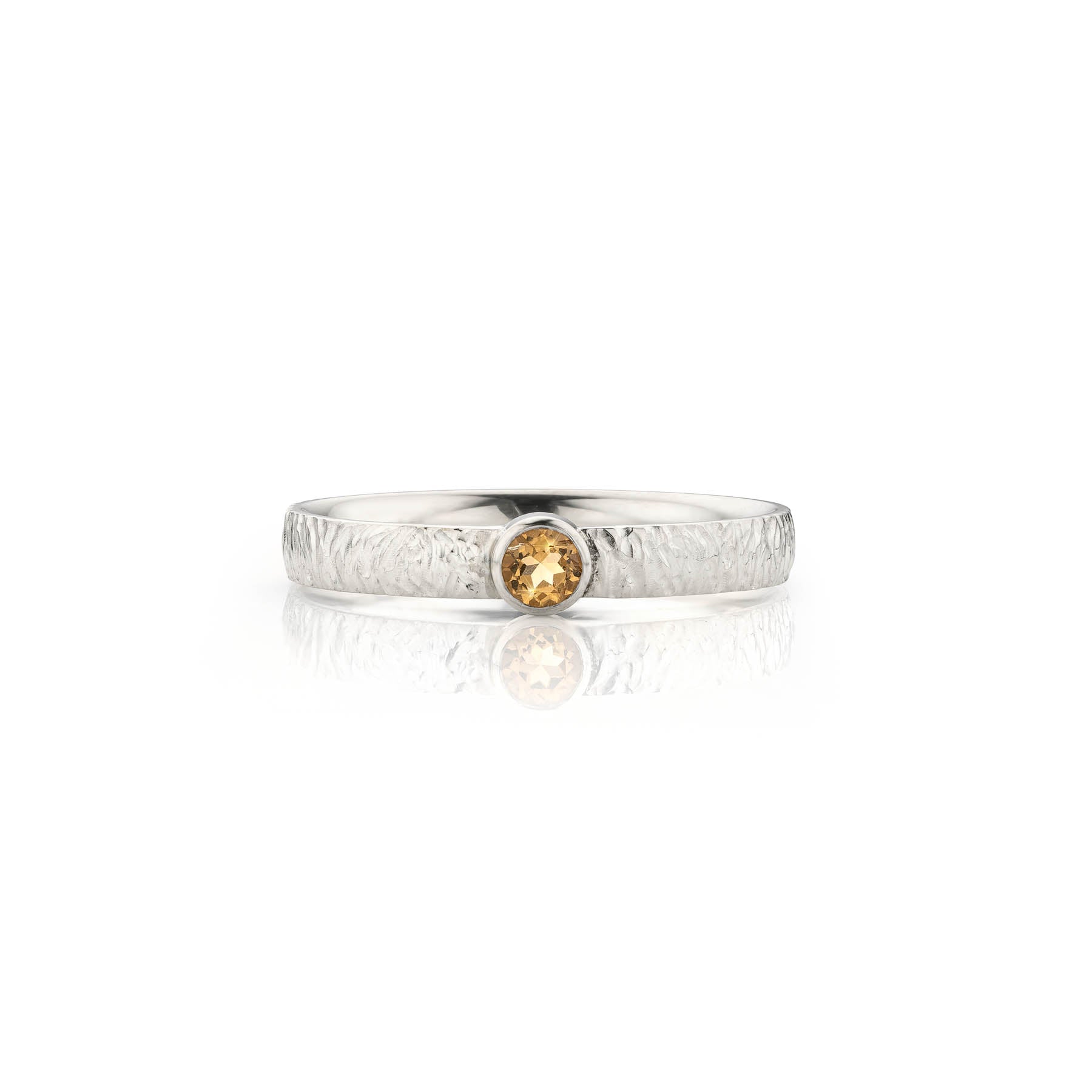 Deze zilveren ring wordt met zorg vervaardigd en met de hand afgewerkt voor een subtiele, organische textuur die doet denken aan een boomschors of de rimpeling in het water. De natuurlijke Citrien wordt zorgvuldig geselecteerd en met precisie gezet, waardoor elke ring een unieke uitstraling heeft. De combinatie van de gele edelsteen met de zachte glans van sterling zilver maakt dit sieraad veelzijdig en perfect voor elke gelegenheid.