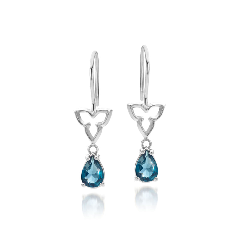 Deze 14 karaats witgouden oorhangers hebben een donkerblauwe London Blue Topaas. De gouden oorbellen zijn hoogglans afgewerkt, kennen een gotisch element boven de blauwe edelsteen. Prachtig te combineren met de Witgouden ring met London Blue Topaas, witgouden oorstekers en de witgouden armband met gotische vorm.